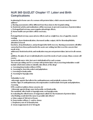Nur 365 Quizlet Chapter 17 Nur 365 Quizlet Chapter 17 Labor And Birth Complications In Planning Studocu